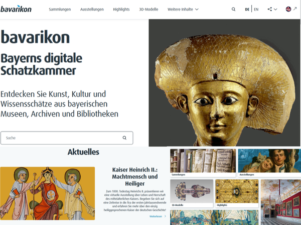 www.bavarikon.de ist das Kulturportal des Freistaats Bayern und eröffnet mit seinen bald 470.000 hochwertigen Digitalisaten aus über 700 Sammlungen seit 2013 einen kostenlosen Zugang zur bayerischen Kulturlandschaft: