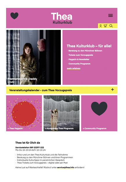 Kultur, Kontakte, Karten lautet der Werbeslogan und bringt die wesentlichen Aspekte dieser seit 1919 bestehenden Einrichtung auf den Punkt. Der Thea Kulturklub versteht sich als Bindeglied zwischen Publikum und Bühne und ebenso als Sparringspartner der Medien.
