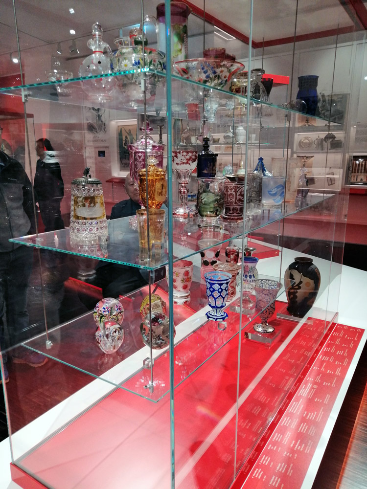 Geführt von Eva Haupt, der Ausstellungskuratorin, konnten wir in alle Dimensionen der sudetendeutschen Geschichte eintauchen: Politik, Wirtschaft, Industrie, Handwerk und Handel, Kunst, Kultur und Religion – und natürlich Vertreibung nach Ende des Zweiten Weltkriegs und Wiederaufbau im Westen. Sämtliche Themenbereiche sind mit wunderbaren und vielfach überaus kostbaren Exponaten und Unikaten dokumentiert – so gewinnt Geschichte eine große Plastizität.